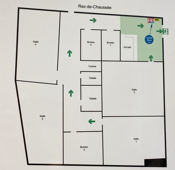 Surface totale de 150m² en rdc comprenant 4 salles et trois petits bureaux.