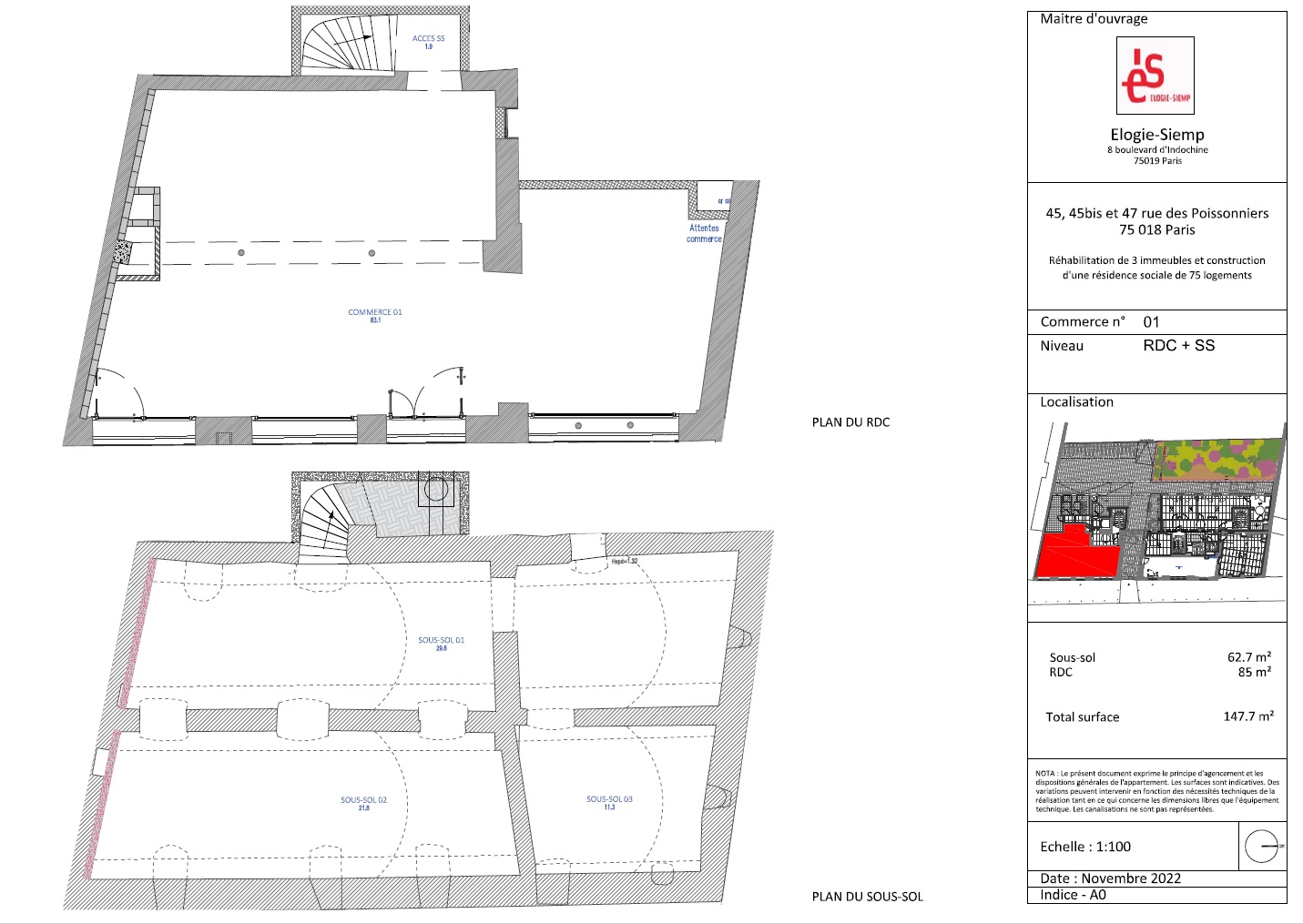 - Boutique de 85 m² au RDC, PMR.