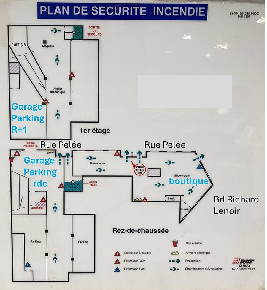 - Parking 2 niveaux de 18 places accessible depuis la rue Pelée, 2 portes d'accès.
