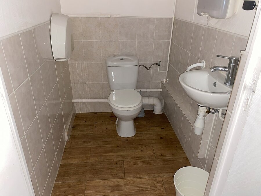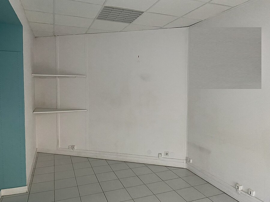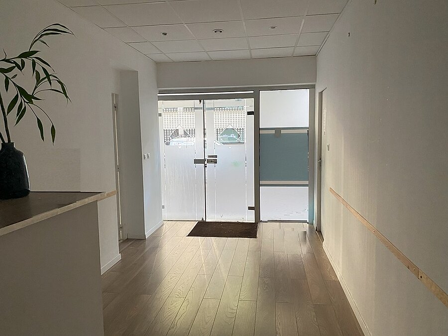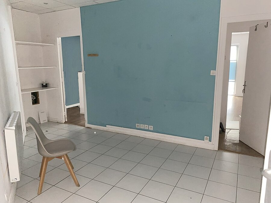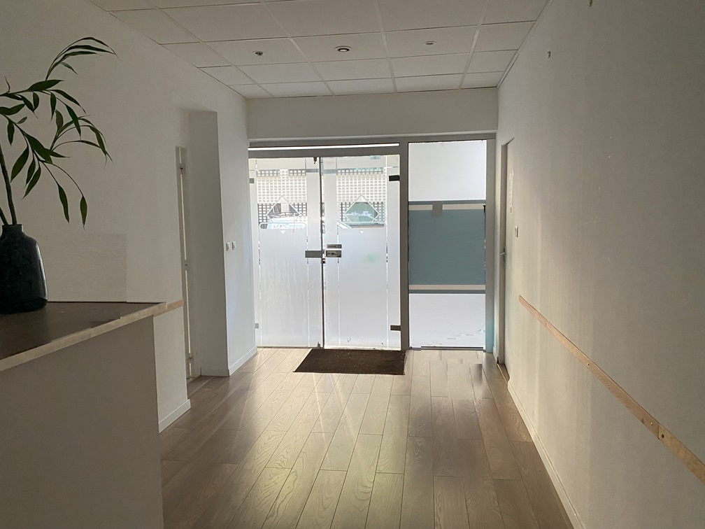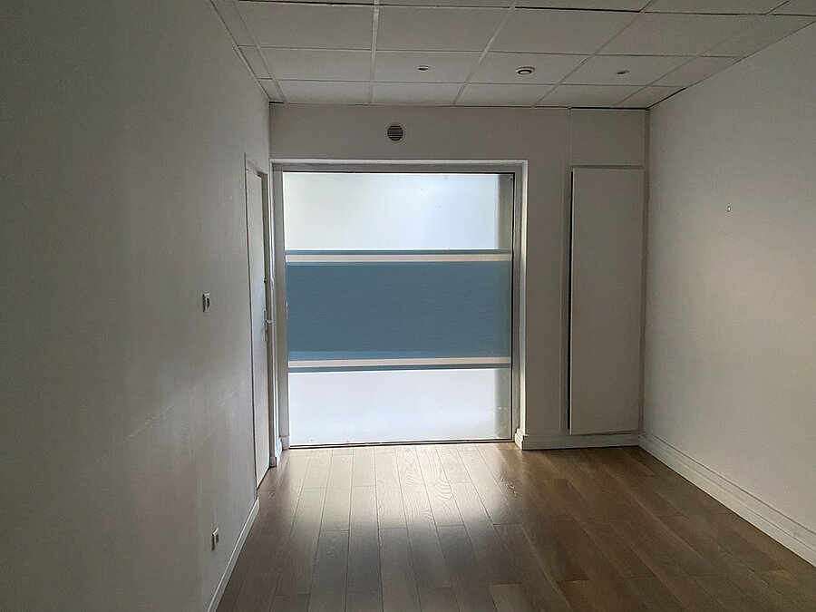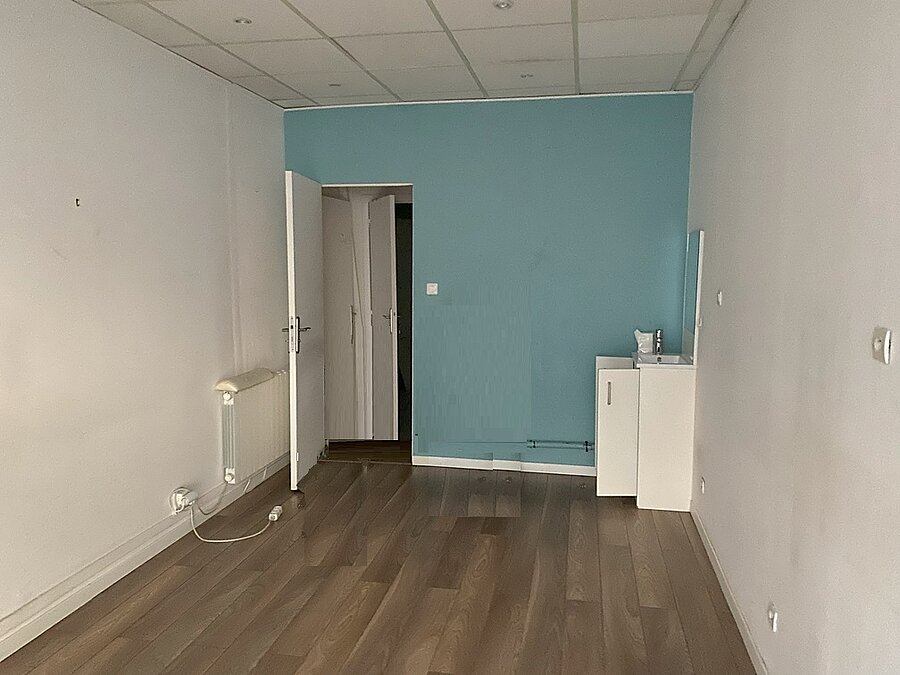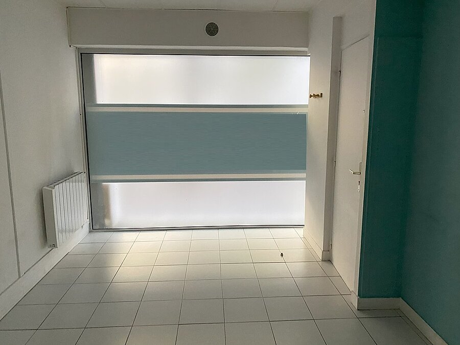 Local commercial avec porte et vitrine sur rue, idéal pour une profession médicale avec un espace d'entrée et d'attente, un sanitaire et deux bureaux, bon état d'aménagement, accessible aux personnes à mobilité réduite